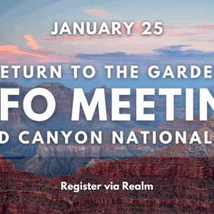 Start packing your bags, Return to the Garden Part VII is scheduled for August 26-30, 2026 and we’re headed to Grand Canyon National Park! Join us on Sunday, January 25th at 12:00 pm for an informational meeting. Attendance at the informational meeting does not guarantee registration for the retreat in August.